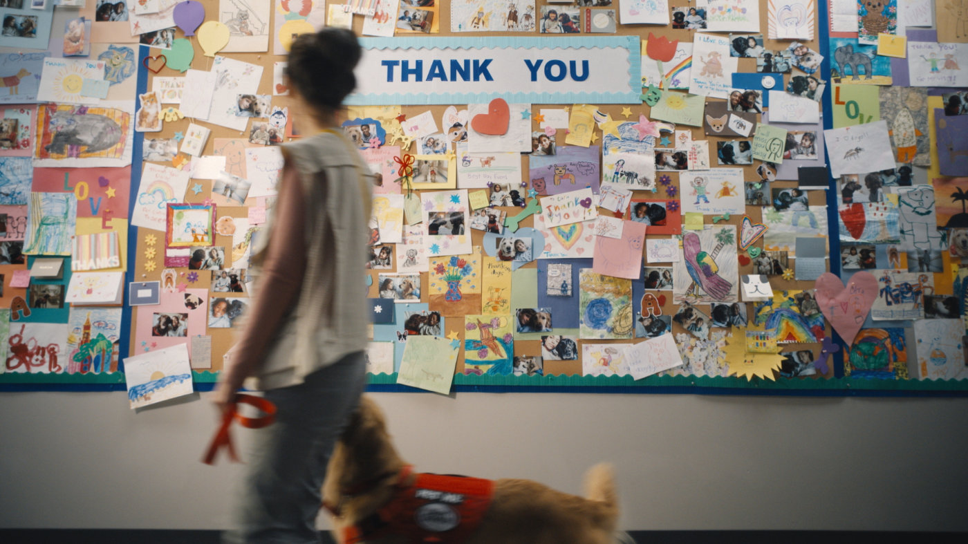 The spot follows a young girl reassuring her dog as her father leaves for work each morning, explaining that he helps deliver dog food so dogs everywhere can stay healthy and bring comfort to people in need. As her narration unfolds, the story reveals a deeper, emotional layer, culminating in a hospital filled with thank you cards from children supported by emotional support animals during their recovery. Among them is the daughter, who was once comforted by a therapy dog herself, reframing the father’s routine as a quiet act of care and connection.